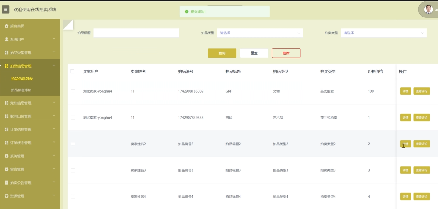 | 前提 | 卖家用户已登录系统,并进入"我的拍品"管理页面 |
