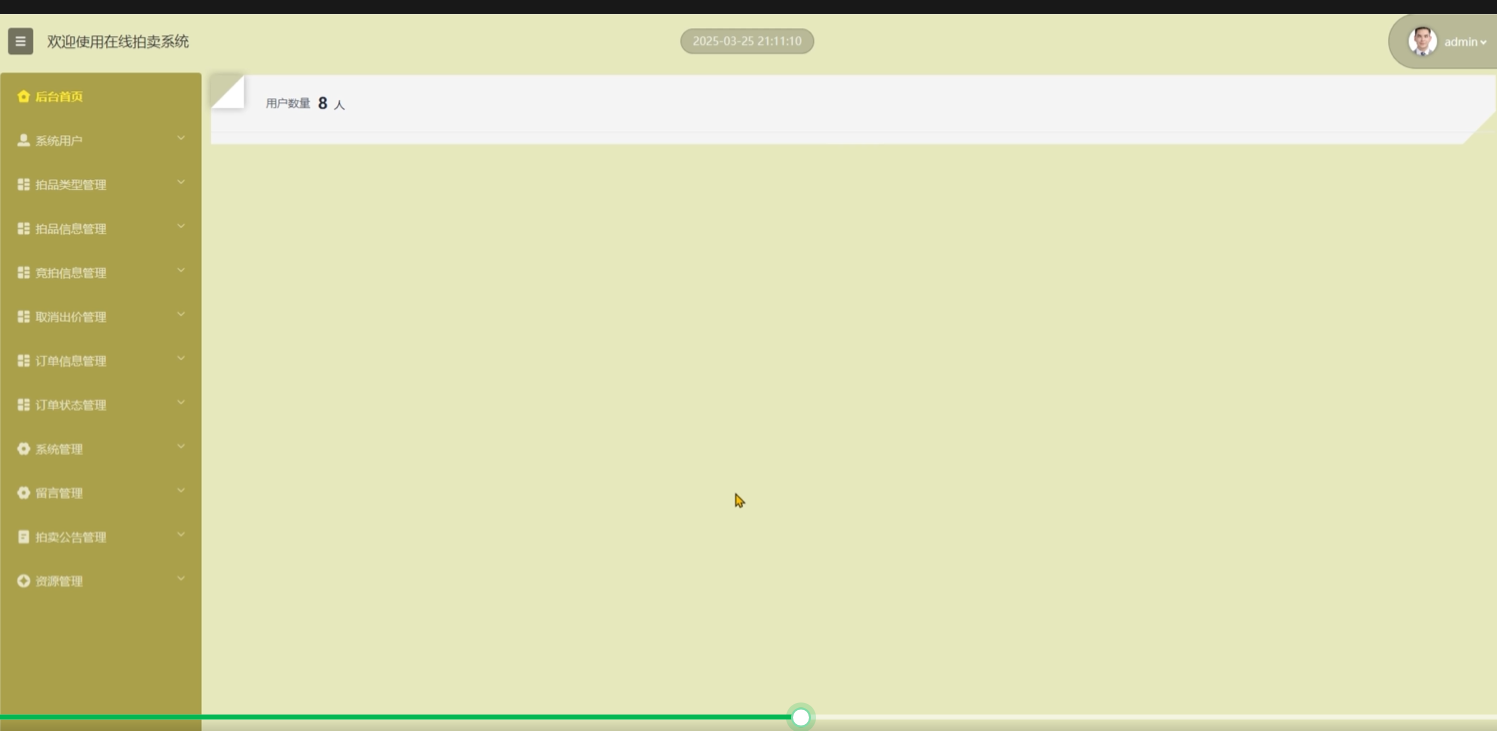 After rigorous functional testing, performance testing, and security testing, the system runs stably, with a simple operation process and user-friendly interface, effectively meeting the business needs of auctioneers and bidders. This system not only breaks through the temporal and spatial limitations of traditional auctions, improves transaction transparency, but also provides technical solutions for the digital transformation of the auction industry, with good market application prospects and social promotion value. The successful implementation of the system provides a referenceable technical architecture and implementation solution for the development of similar e-commerce platforms.