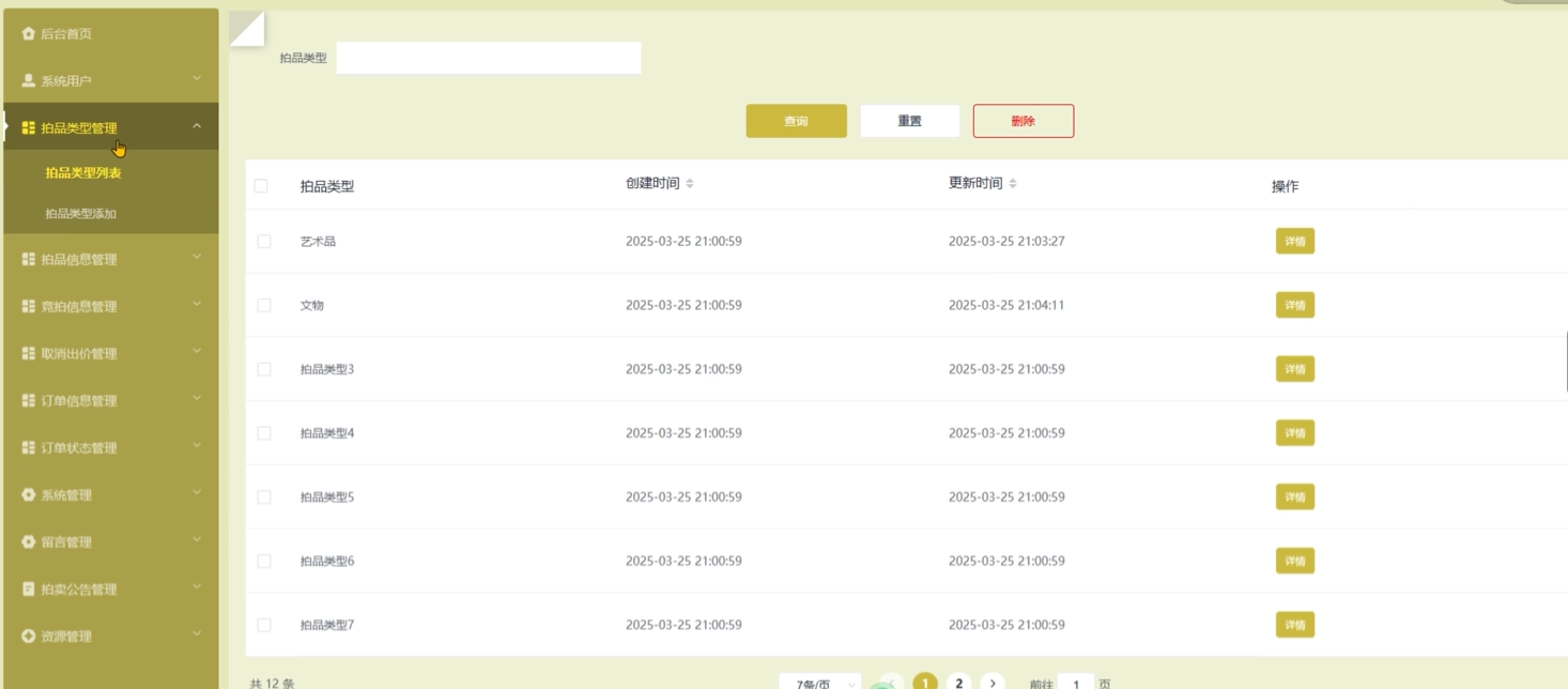 (6) 拍品类型管理:管理员负责管理拍卖品的分类,添加、删除或修改拍品类型。