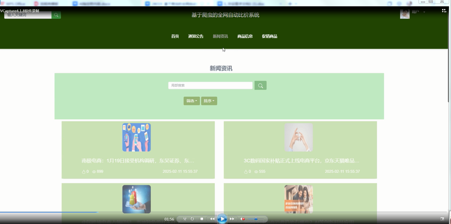 随着互联网电商行业的快速发展,消费者在众多电商平台上购买商品时面临着大量信息的选择,价格、库存、销量等因素成为影响消费者决策的重要依据。为了帮助用户高效地选择性价比高的商品,基于爬虫技术的全网自动比价系统应运而生。本文设计并实现了一个基于Python语言、MySQL数据库与Django框架的自动比价系统。该系统通过爬虫抓取多个主流电商平台(如淘宝、京东等)上同一商品的相关数据,包括价格、库存、销量、评价等,自动生成比价信息并呈现给用户。系统不仅具备商品比价功能,还包括商品筛选与推荐、价格监控与提醒等功能,帮助用户根据个人需求找到性价比最佳的商品。同时,系统提供商品的详细信息展示、用户管理与数据分析功能,能够记录用户的购物历史、比价记录及价格监控设置,提升用户的购物体验和决策效率。