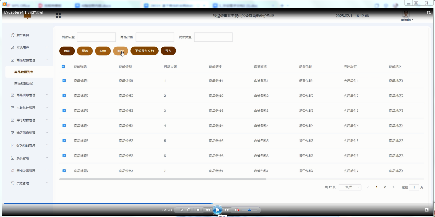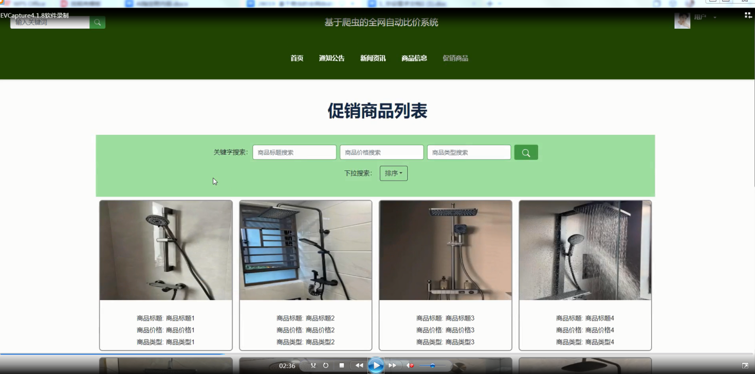 所有这些功能都基于爬虫数据分析,确保商品信息始终保持最新和准确,提升平台的数据管理效率和用户体验。通过这些灵活的管理功能,管理员可以更精细地调整商品展示和销售策略,优化平台运营。界面如下图所示。