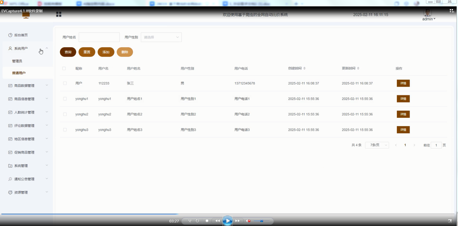 商品数据管理:管理员可以管理和分析商品信息、价格数据以及商品来源的更新。