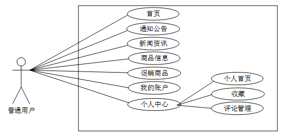 根据以上功能需求,得出以下用例图,普通用户用例图如下所示。