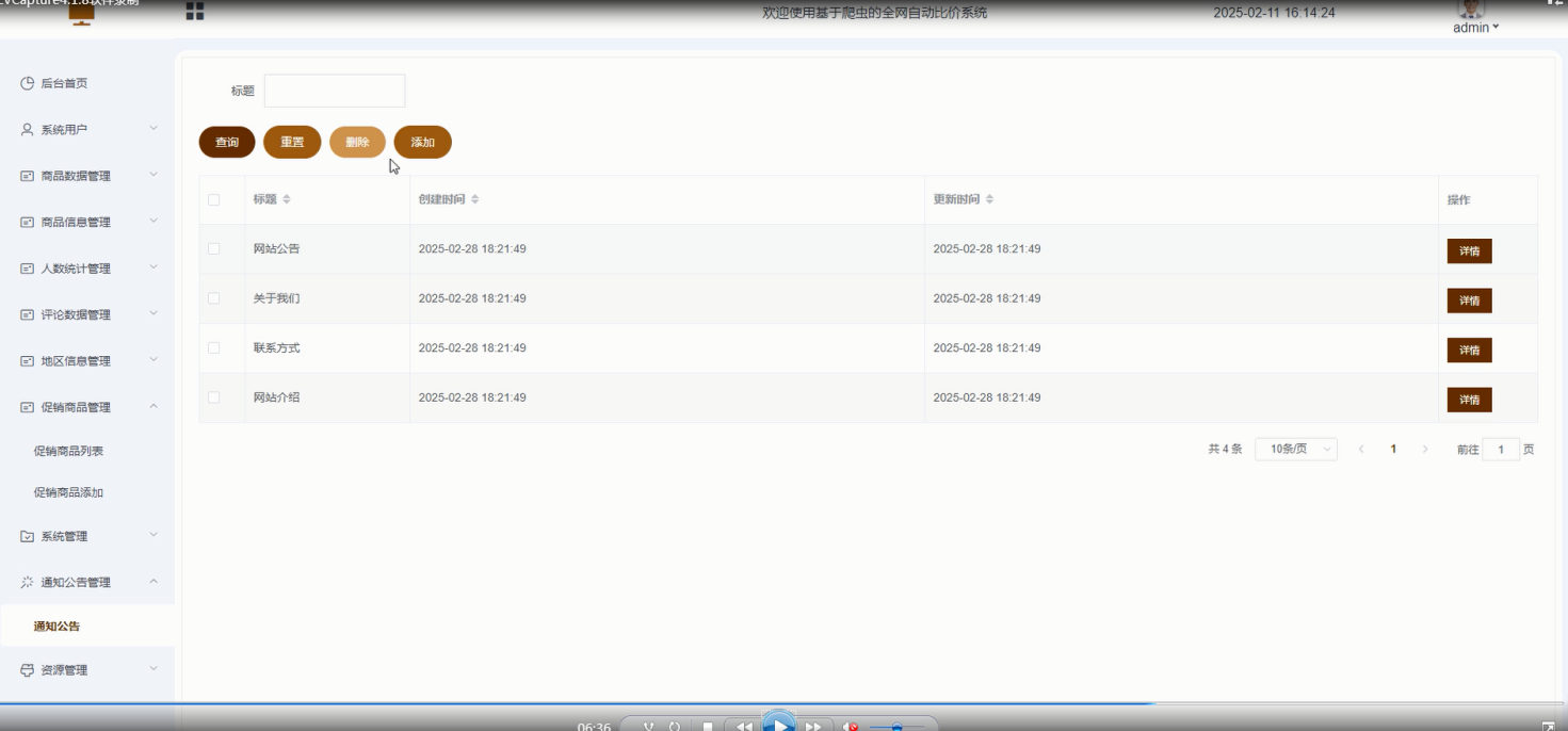 管理员可以发布、修改和删除系统内的通知公告。发布重要信息,确保用户及时获取重要消息。通知公告管理界面如下图所示。