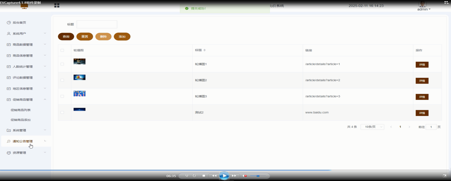 系统管理(轮播图):管理网站首页的轮播图,包括图像、链接、顺序等的设置。