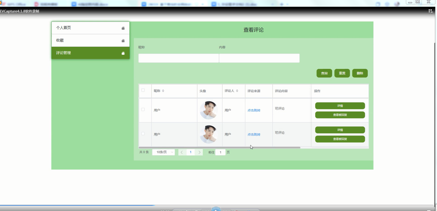 个人中心:包括个人首页、收藏的商品、评论管理等功能:
