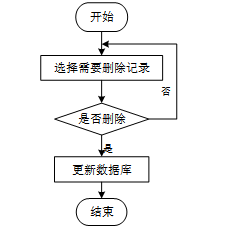 用户选择需要删除的记录后,系统判断是否确认删除。若未确认,返回选择环节;若确认删除,则更新数据库,删除对应记录,完成操作后流程结束。删除信息流程图如图3-8所示。