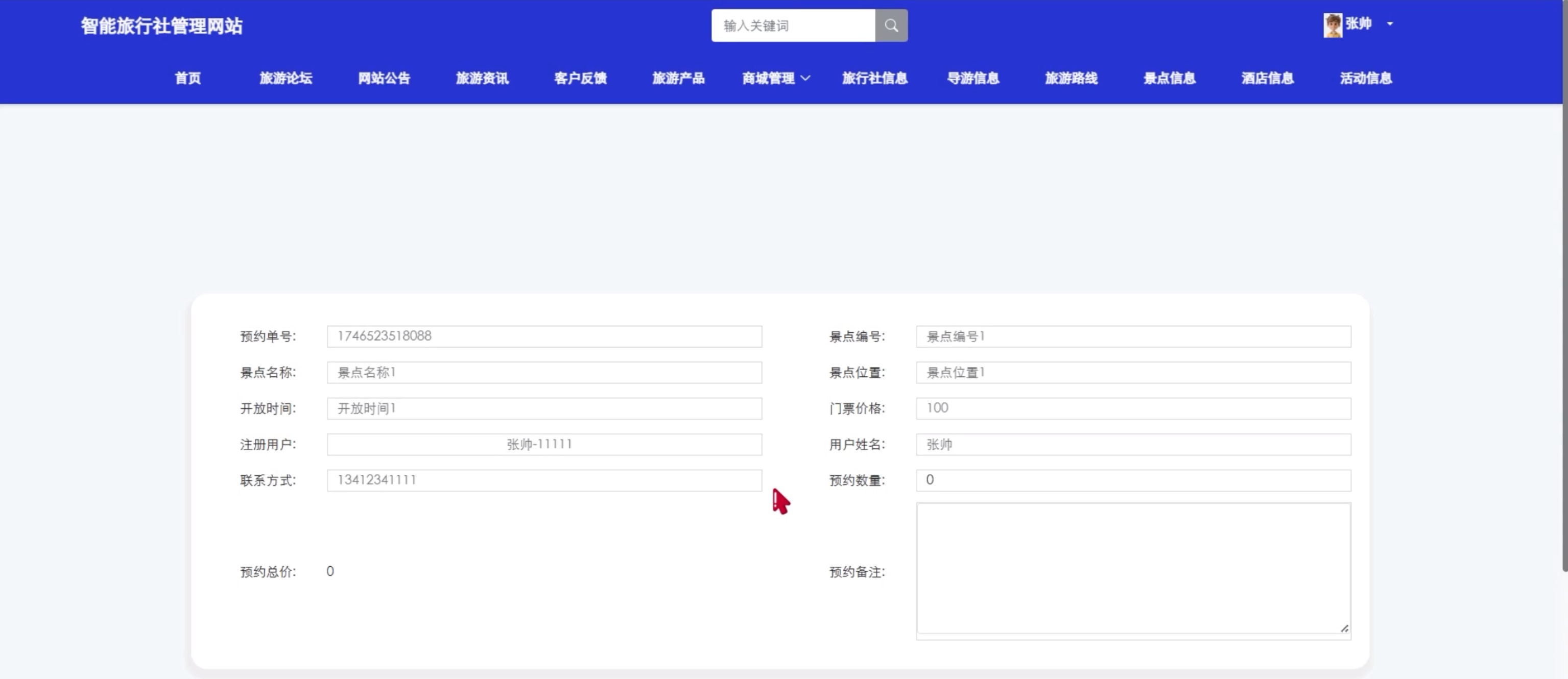 (14)景点预约管理:管理员点可查看景点预约列表,同时可对相关信息进行增删改查。
