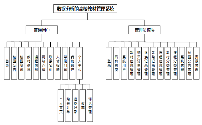 通过对应的功能做了需求分析以后该高校教材管理系统各角色主要包括的功能说明如下: