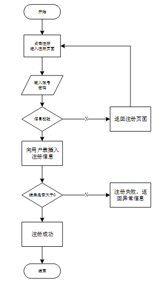 注册的过程,第一部分是账号的注册,第二部分是信息完善。在业务开展过程中,管理员可对用户信息进行修改等管理操作,注册流程如图33用户注册流程图所示。