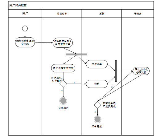 业务流程图既反映了内部业务间的相互联系,又反映了教材交易和信息流动情况。高校教材管理系统须支撑整个机构不同层面的多种职能,而各功能模块间存在着多种关联信息,组成一个有机整体,并针对教材信息自身特点和面临的现实条件,对系统进行业务流程图设计。系统通过流程的顺畅和高效,实现了教材交易需求的满足和系统管理的便捷,提升了系统的运行效率和用户体验。高校教材管理系统的业务流程如下图所示。