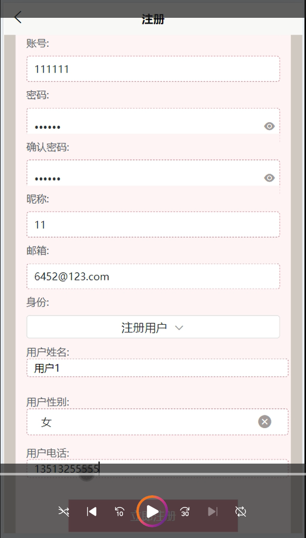 | 6-1 | 用户注册 | 1. 输入有效注册信息,包括用户名、密码和联系方式。 | 注册成功,系统保存用户信息。 |