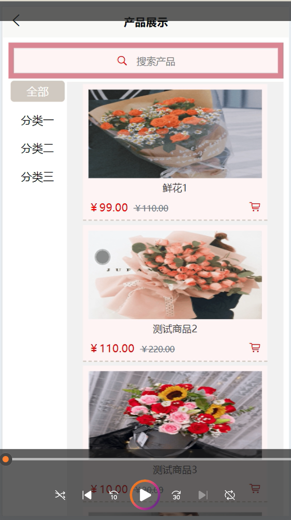 | 6-3 | 鲜花展示搜索 | 1. 点击鲜花展示。 | 显示所有鲜花展示列表。 |