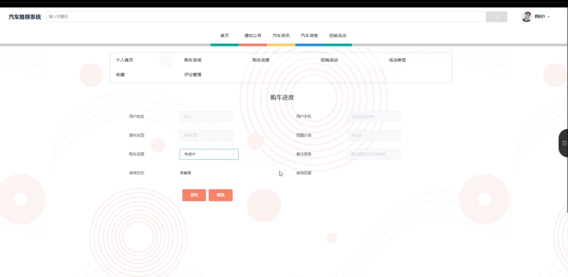购车咨询:用户可以提交购车咨询,系统会提供相关信息。