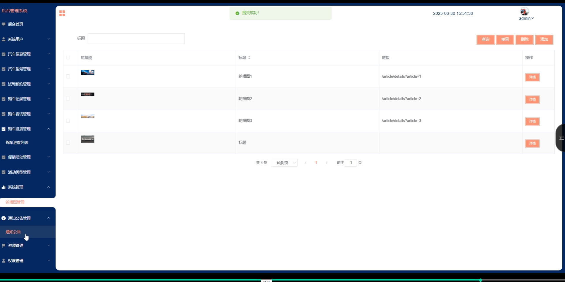 系统管理(轮播图):管理系统首页的轮播图,添加、删除或修改展示内容。