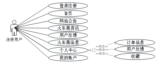 校园火车票代收管理系统用例分析主要从注册用户、管理员、代售点这些实体展开描述。