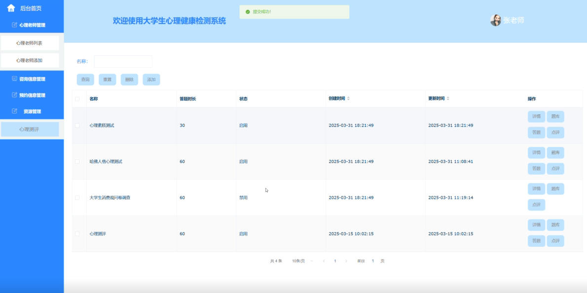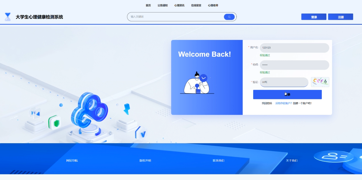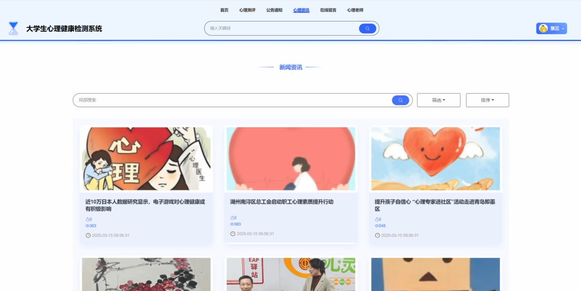 随着现代社会的快速发展及竞争压力的增加,大学生心理健康问题逐渐成为社会各界关注的焦点。面对日益复杂的学习和生活环境,传统的心理健康支持方式已难以满足现代大学生的需求。基于此背景,开发一套使用Java语言并基于SSM框架的大学生心理健康检测系统。系统通过信息技术手段提供全面的心理健康服务,促进学生心理健康的维护与提升。