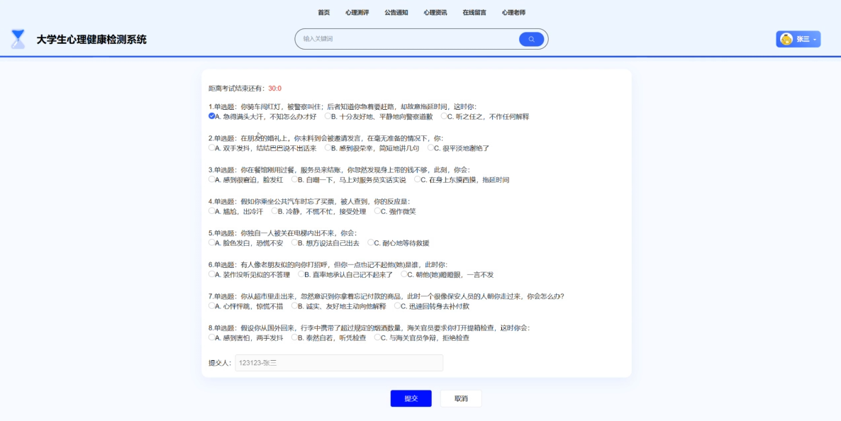 综上所述,基于Java语言和SSM框架构建的大学生心理健康检测系统不仅在技术上具有先进性和实用性,而且在功能设计上也充分考虑到了不同用户群体的需求,为改善大学生心理健康状况提供了有效的解决方案。这一体系的建立不仅有助于提升学生的心理健康水平,也为高校心理健康教育工作带来了新的机遇和挑战。未来,随着技术的进步和社会需求的变化,该系统有望进一步发展和完善,为更多学生带来福祉。