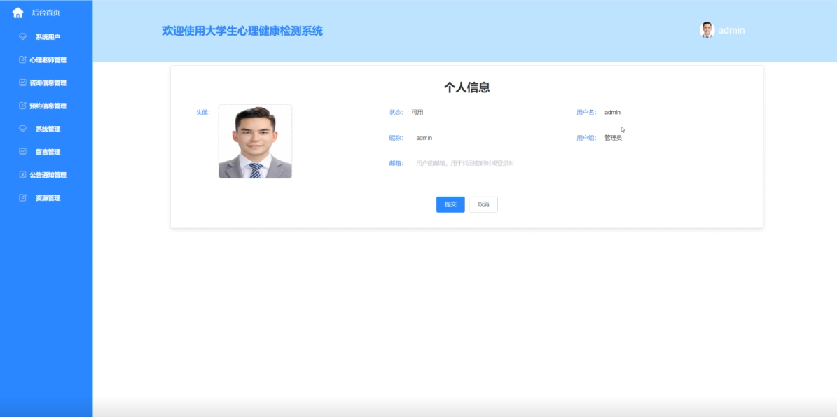 系统的建立体现了对大学生心理健康问题的重视,它不仅是对学生个体的关注,也是对整个校园心理健康环境的提升。通过这样一个平台,学校能够更加有效地监测学生的心理健康状况,及时发现潜在问题并采取相应的干预措施,从而促进学生全面发展。此外,系统的可扩展性和未来升级潜力也为长期发展奠定了基础,可以根据需要不断优化和添加新功能,以适应不断变化的需求。