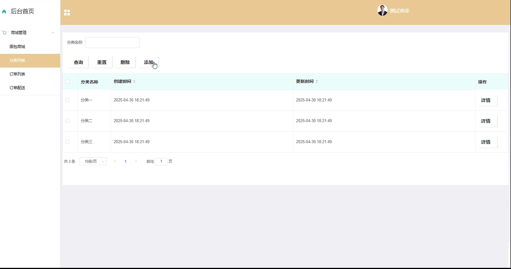 添加面包商城测试: