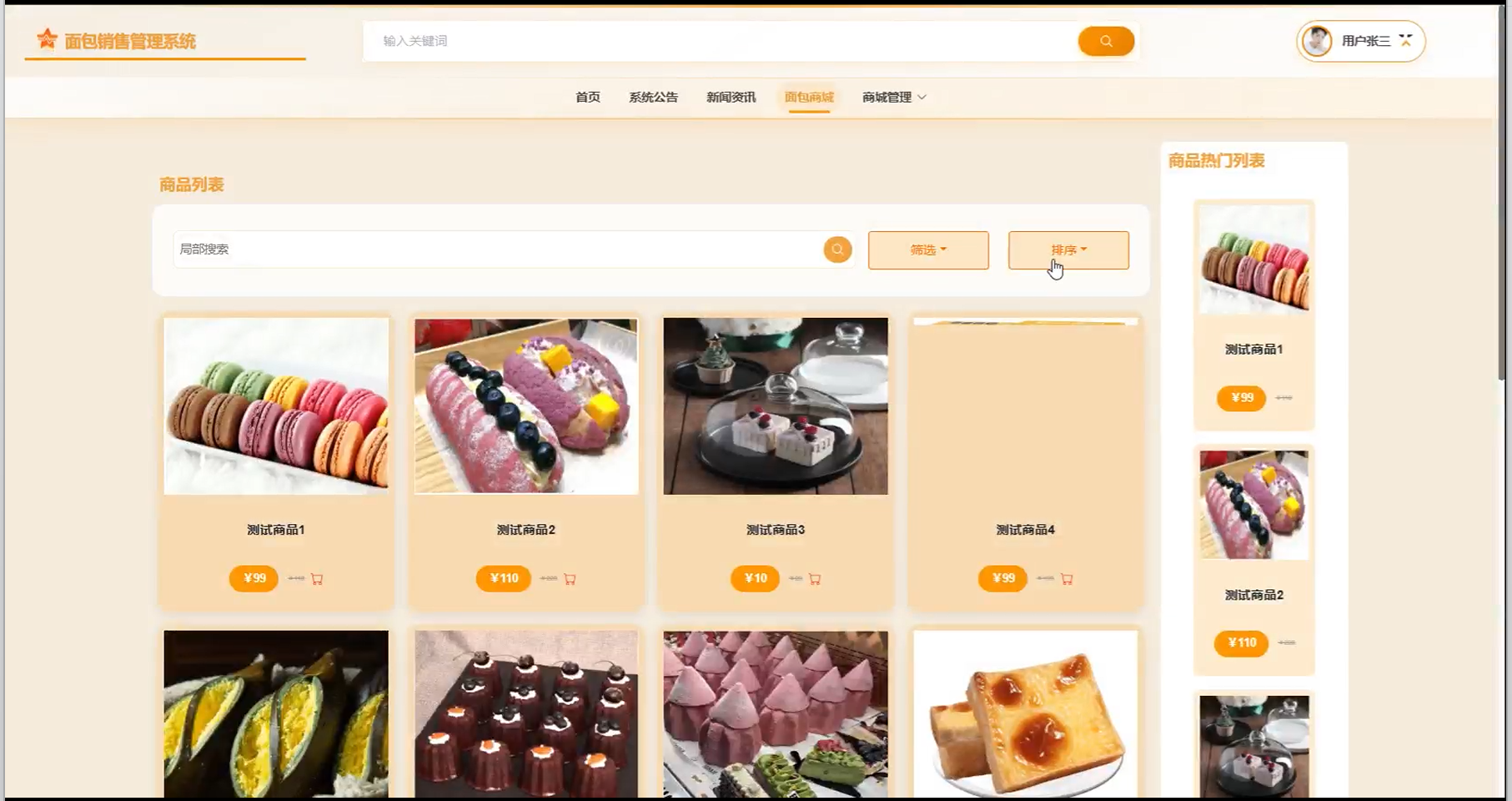 | 预期结果 | 可以查看到所有面包商城产品列表 |