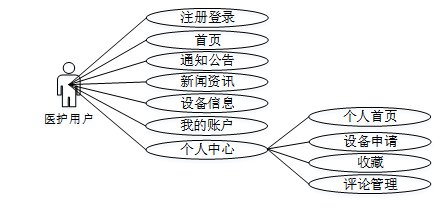 医院设备管理系统医护用户角色用例图如下所示。