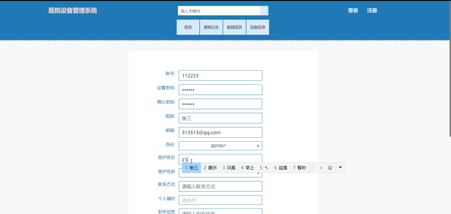 在对该系统进行完详细设计和编码之后,就要对医院设备管理系统的程序进行测试,检测程序是否运行无误,反复进行测试和修改,使之最后成为完整的软件,满足用户的需求,实现预期的功能。系统测试的目的在于确保软件正常运作,并实现其应有的功能,促进行中出现的错误和逻辑问题。系统测试不但可以找见程序运行中的系统错误,还可以找见程序运行的需要改进的地方,并去协助改良程序运行使其获得最高幅度的完备。世界一流的安装测试员可以增加软件品质,将软件系统错误概率降至最少。