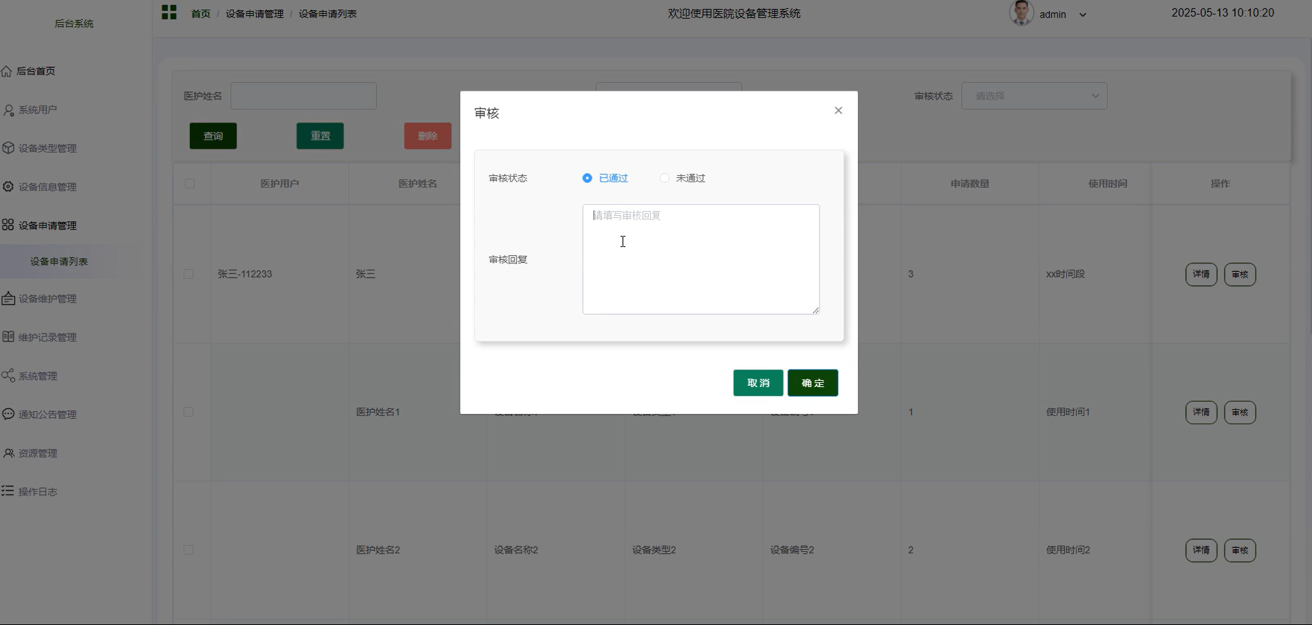 图5-13 设备申请审核界面