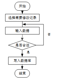 用户首先选择需要修改的记录,输入修改后的数据,系统判断输入数据是否合法。若数据不合法,提示重新输入;若数据合法,则将修改后的数据写入数据库,完成操作后流程结束。修改信息流程图如图3-7所示。