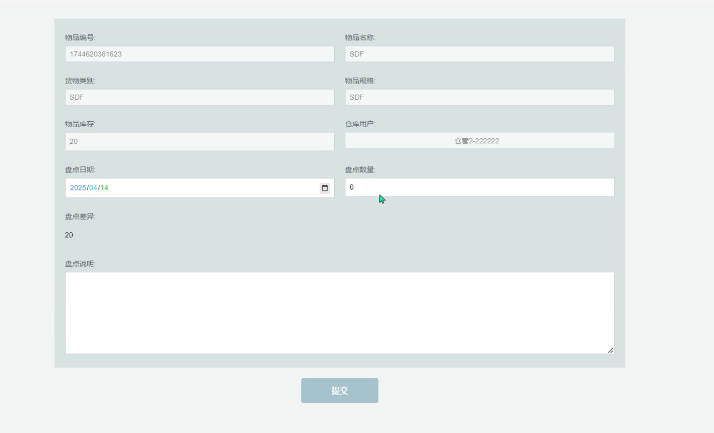 管理员可进行定期库存盘点,核对实际库存与系统记录,确保库存数据的准确性,防止丢失或过期商品。库存盘点管理界面如图5-17所示。