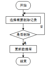 用户选择需要删除的记录后,系统判断是否确认删除。若未确认,返回选择环节;若确认删除,则更新数据库,删除对应记录,完成操作后流程结束。删除信息流程图如图3-8所示。