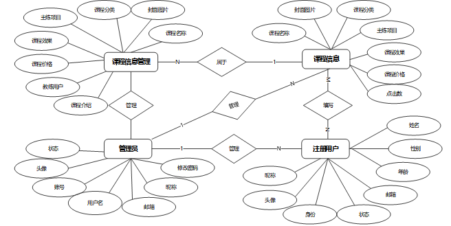 数据库概念结构设计主要涉及数据库的实体和实体之间的关系。通过实体-关系模型或者其他适当的模型,我将定义系统中涉及的各个实体以及它们之间的联系。下面我将罗列主要的实体属性图和系统E-R图。