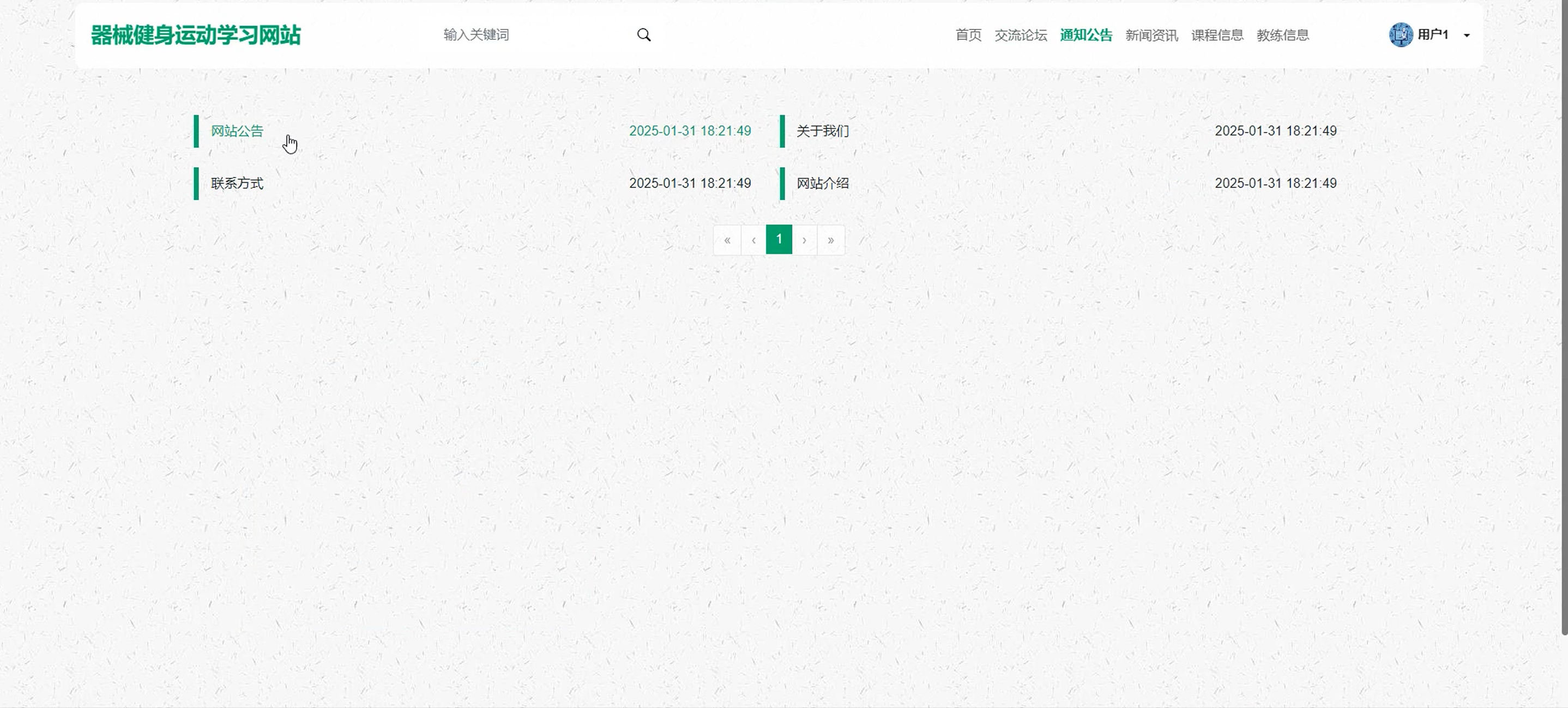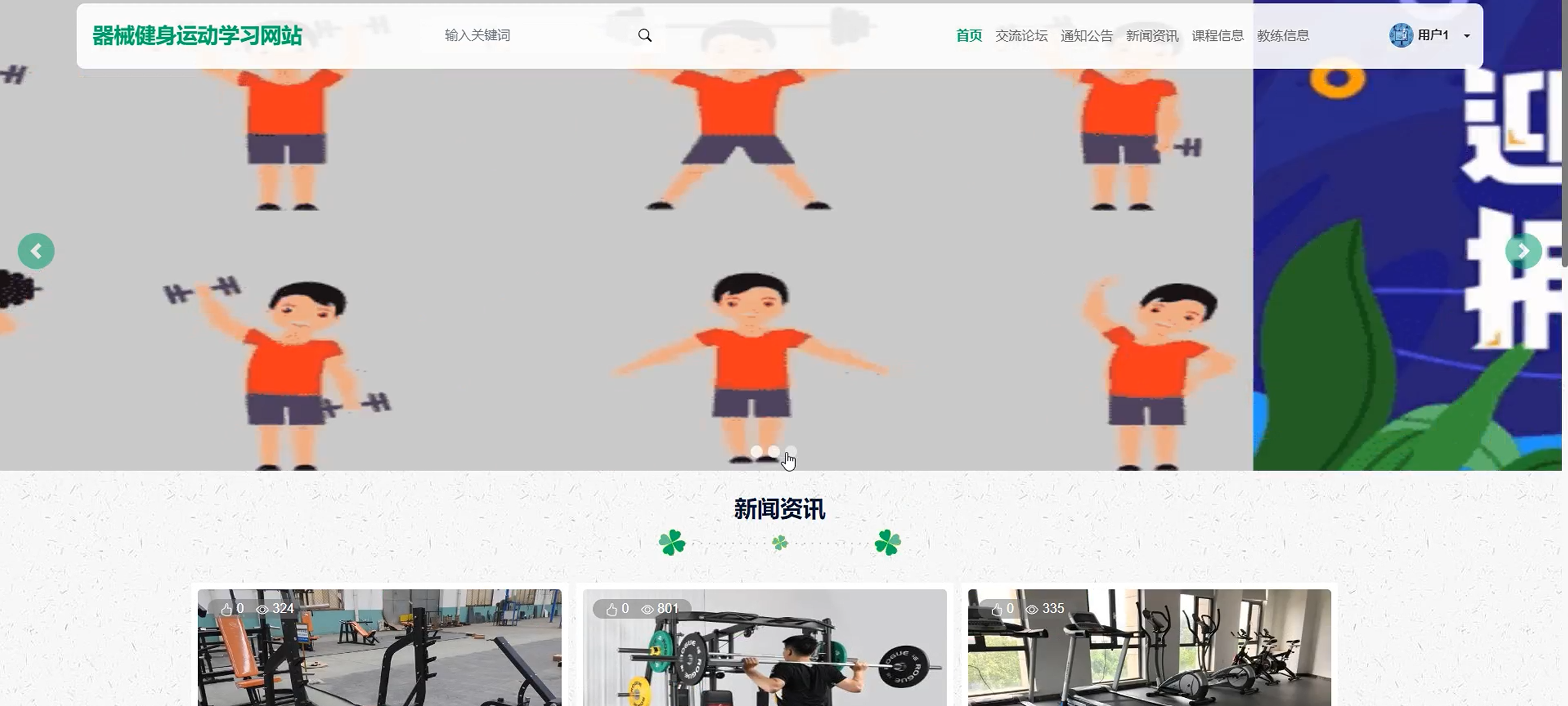 首页:展示热门健身课程、最新公告和精选新闻资讯,提供快速导航至不同板块,帮助用户快速了解网站的核心内容和最新动态。