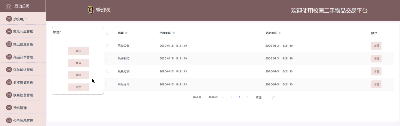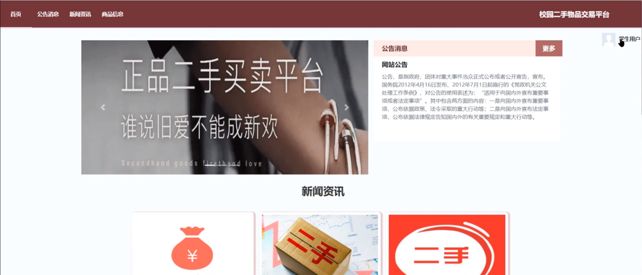 Keywords:campus; Second hand goods trading platform; Spring Boot