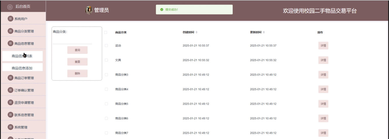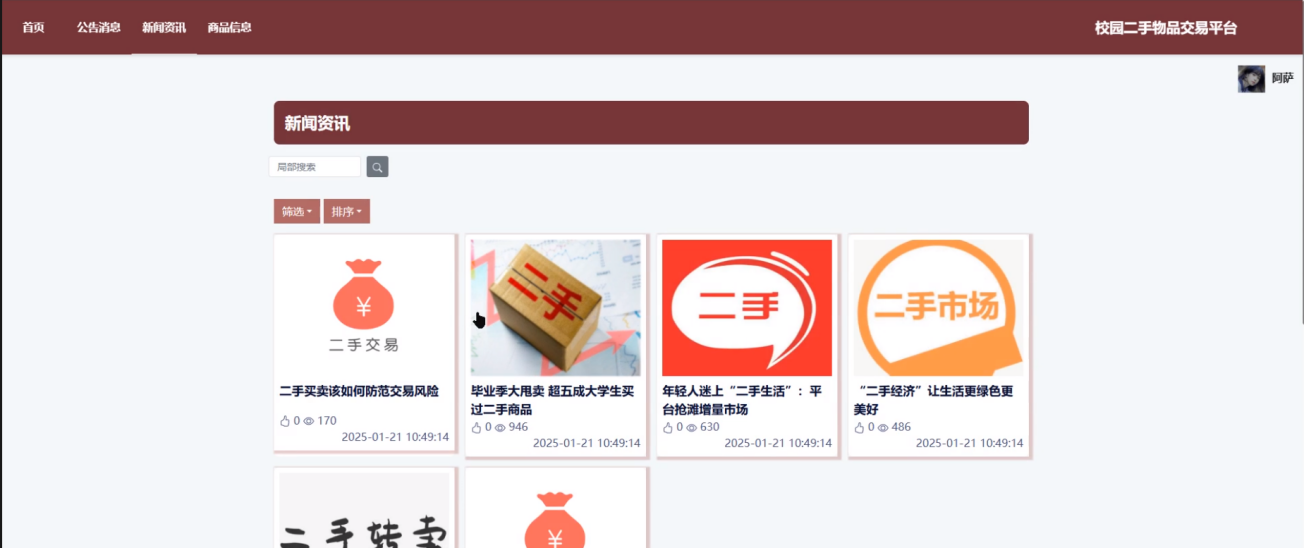 With the popularization of the sharing economy concept and the enhancement of environmental awareness, campus second-hand goods trading platforms, as an innovative way of resource reuse, are gradually receiving attention in major universities. Especially among college students, the rapid replacement of daily necessities such as books, clothing, and electronic products has led to a large accumulation of idle items, which not only wastes resources but also increases the economic burden on students. Therefore, this article proposes a campus second-hand goods trading platform based on the Spring Boot framework, providing an efficient and convenient solution to solve these problems.