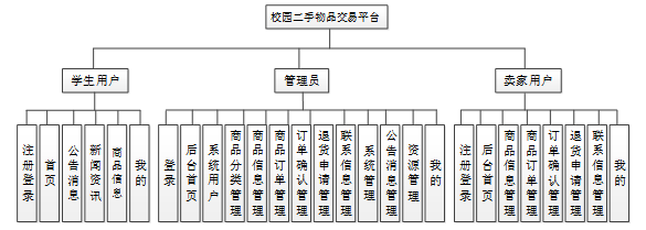 本文首先概述了校园二手物品交易平台开发的背景及其意义,接着详细阐述了系统的具体业务需求。根据这些需求,本文对系统的结构和功能模块进行了精细的设计。整个系统被划分为多个独特的功能模块,每个模块都具有其特定的功能和作用,以确保系统的高效运行和用户友好性。