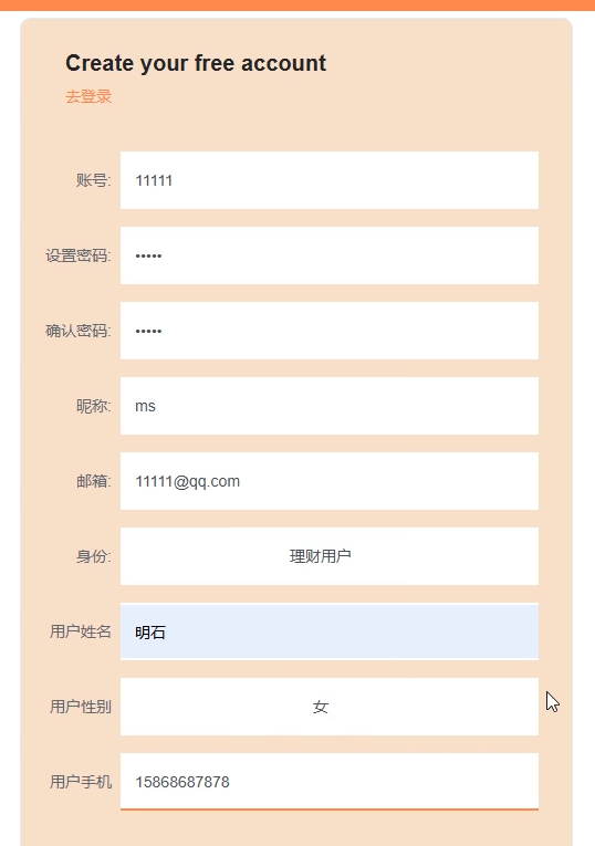 5.1.2 用户注册界面