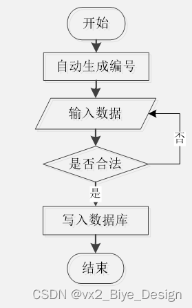 对于医疗管理系统,需要随时添加所需要的数据信息,对于用户添加信息,需要根据添加界面,根据选框的内容进行填写所要添加的数据信息,信息输入完成后判断数据信息是否符合要求,符合要求则添加完成,用户所添加的信息不符合要求,则需要返回到第一步,重新输入数据信息,再进行判断操作,如图3-2所示。