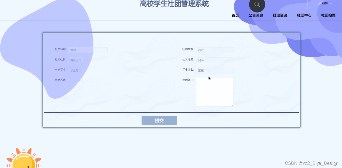 | 预期结果 | 提交以后,页面首页会显示新的社团信息 |