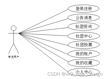 高校学生社团管理系统中学生用户角色用例图如图2.1所示:
