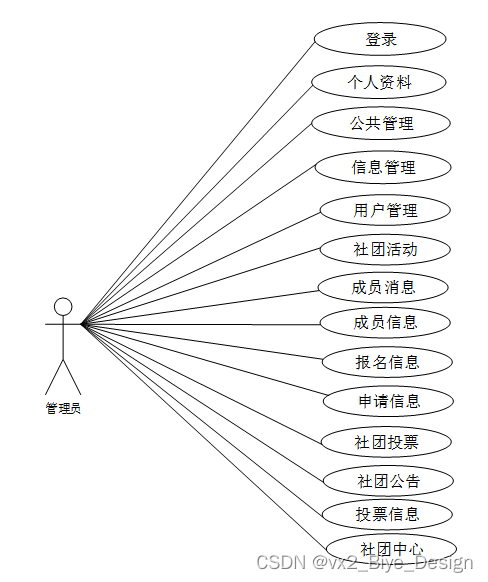 高校学生社团管理系统中管理员角色用例图如图2.3所示: