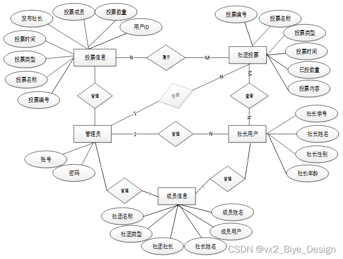 高校学生社团管理系统的E-R图主要是根据学生用户、社团用户以及管理员的实际需求设计的,用户注册以后可以查看社团投票,只有注册登录以后才可以进行投票、社团中心;管理员对整个系统的公告、用户、申请信息等进行综合管理。高校学生社团管理系统采用的是MYSQL的数据库进行存储的,数据库里面储存了很多的表信息,在此罗列出来一些主要的数据库E-R模型图。
