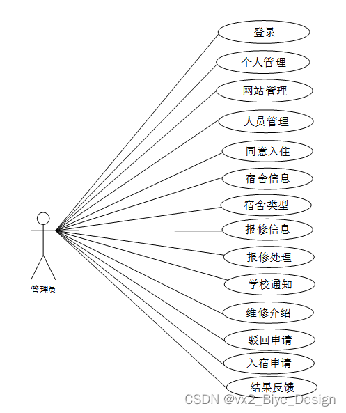 图2.2 学生个性的宿舍分配管理系统管理员角色用例图