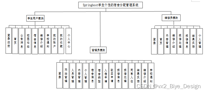 学生个性的宿舍分配管理系统从角色上划分为了学生用户、维修人员、管理员三种角色。