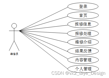 图2.3 学生个性的宿舍分配管理系统中维修员角色用例图