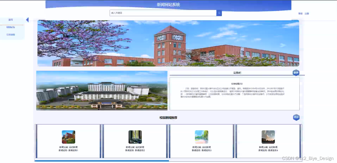 | 预期结果 | 页面显示包含有搜索关键字的校园新闻 |