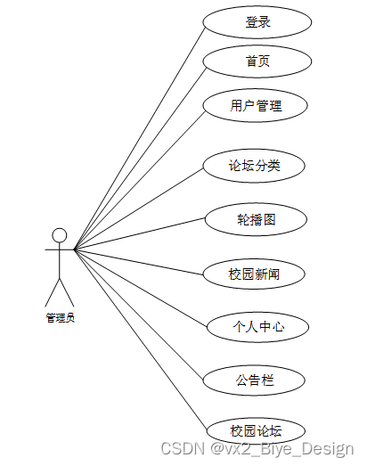 web后台管理上的管理员是维护整个新闻网站系统中所有数据信息的。管理员角色用例如图2-4所示。