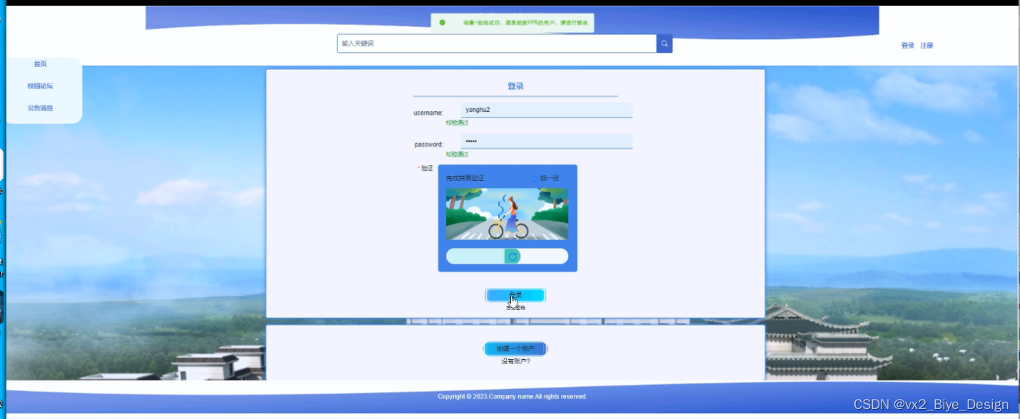 (2)查看新闻网站系统的首页信息:新闻网站系统的首页信息包含了首页、公告消息、校园论坛、校园新闻、我的(我的账户、我的收藏、个人中心)等。