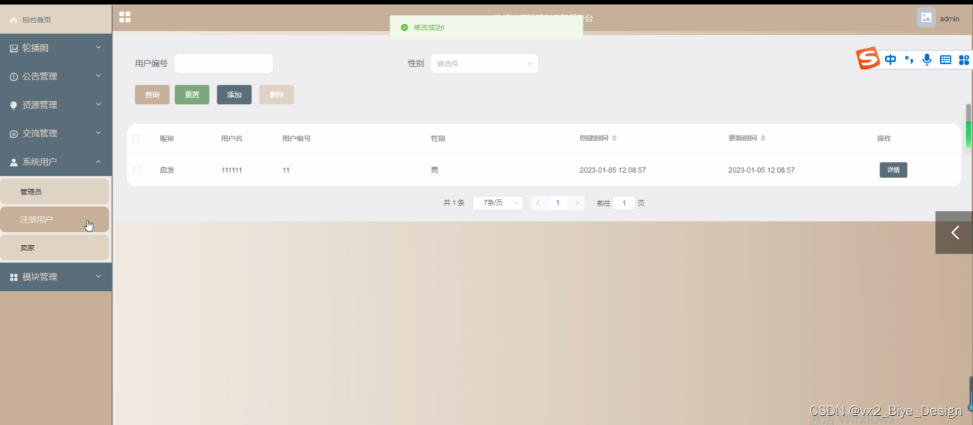 | 评论管理 | 管理员对用户的评论信息进行管理,包括删除、修改 | 评论列表 | 删除是否成功或者修改是否成功 |