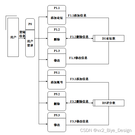 2层为管理员操作后台数据流图,用户可以分别通过添加、修改和删除来对系统进行管理,如下图所示:
